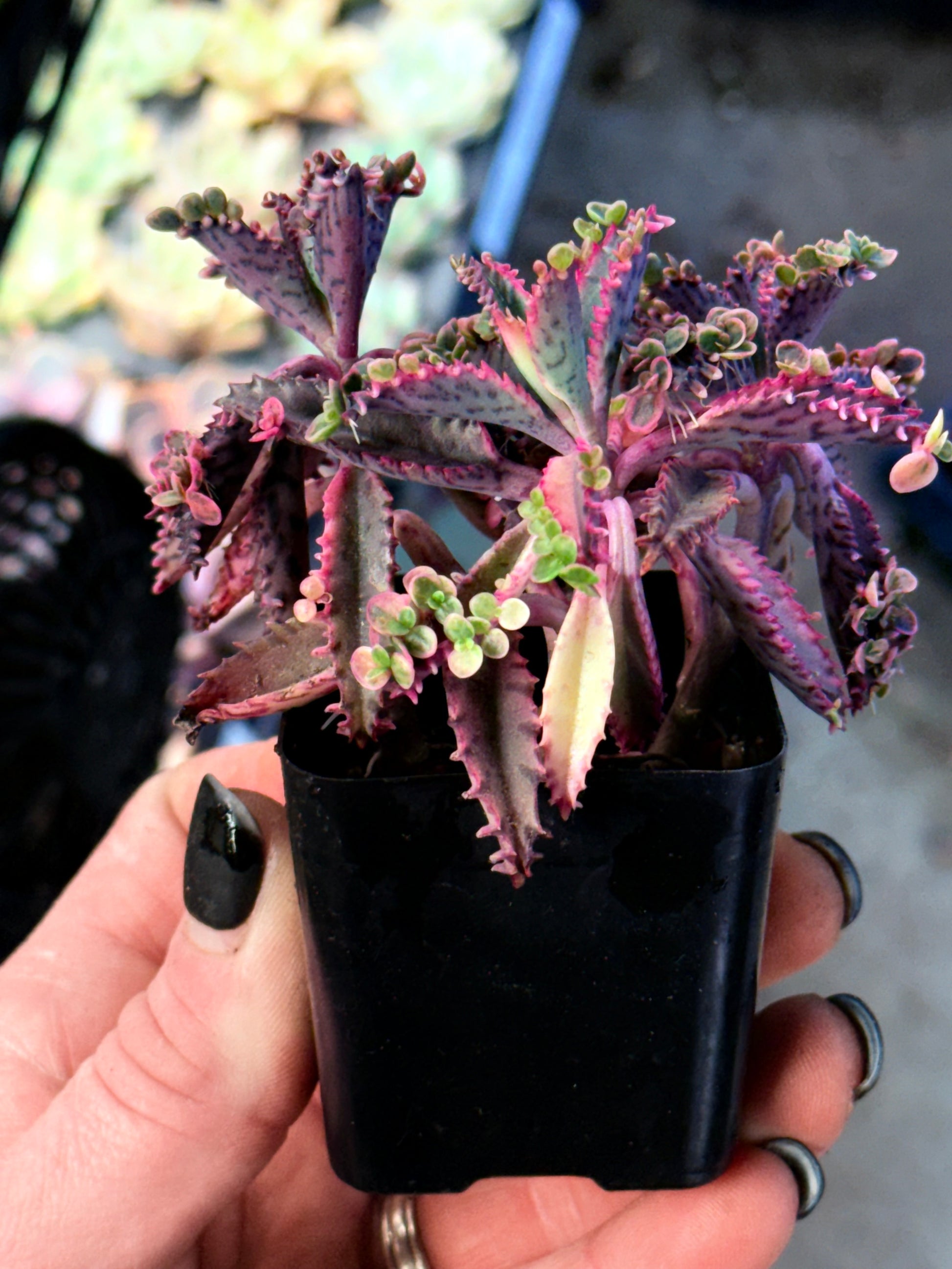 This plant is pure visual impactâpastel variegation, scalloped leaf edges, and rows of tiny âbutterflyâ babies lining the margins. Itâs elegant, dramatic, and one of the most photogenic Kalanchoes youâll ever bring into your collection.